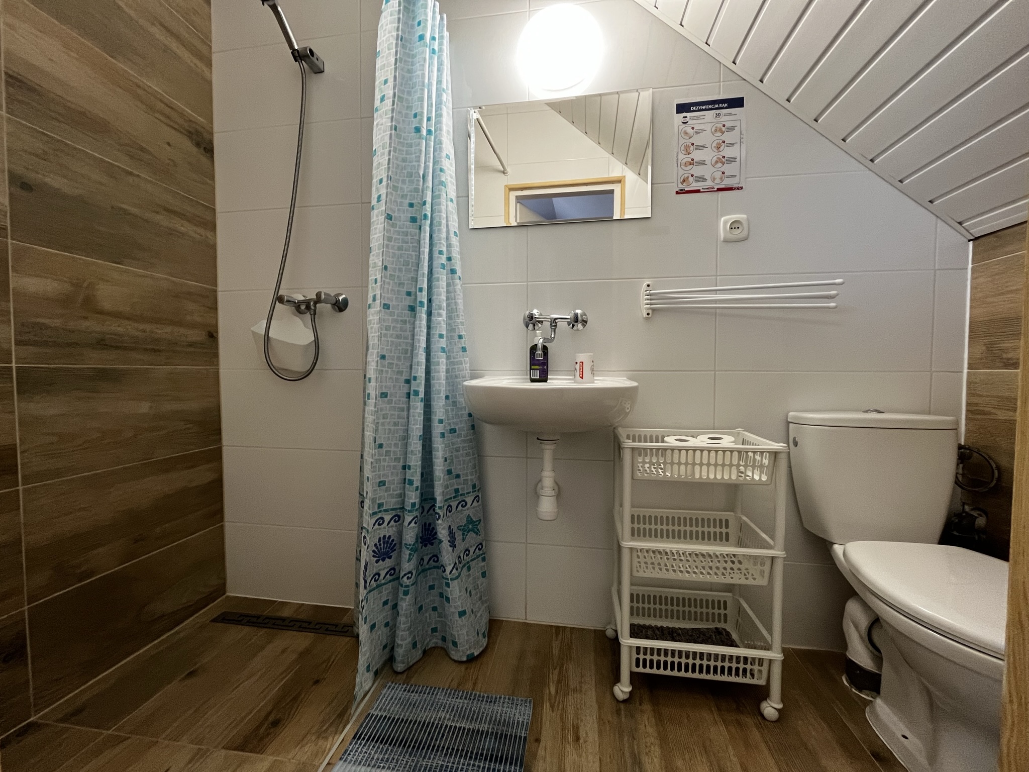 Pokój znajduje się na pierwszym piętrze, aneks kuchenny znajduje się na tym samym piętrze. Łazienka w pokoju.